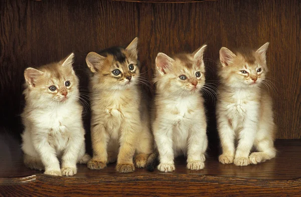 The Somali is a breathtaking cat that resembles a red fox with its large tufted ears masked face large neck ruff and dramatically bushy tail. They are social so they do well in a home with multiple family members or other pets to keep them entertained. So lets buy a kitten or cat from us and make your place happier.